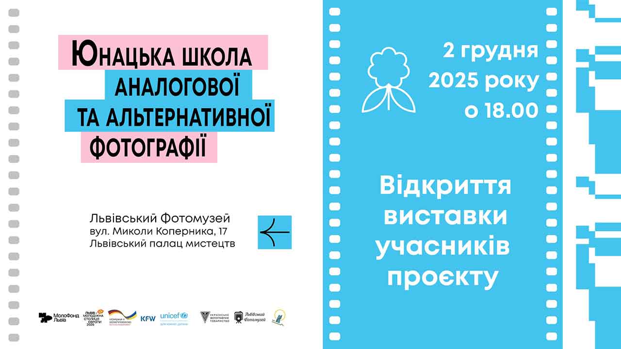 У вівторок, 2 грудня 2025 року, о 18:00, у Львівському фотомузеї (Львівський палац мистецтв, вул. Коперника, 17) відбудеться відкриття виставки робіт учасників проєкту «Юнацька школа альтернативної та аналогової фотографії».